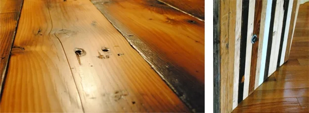 Reclaimed fir plank dining table with 2 x 4 slab trestles.
